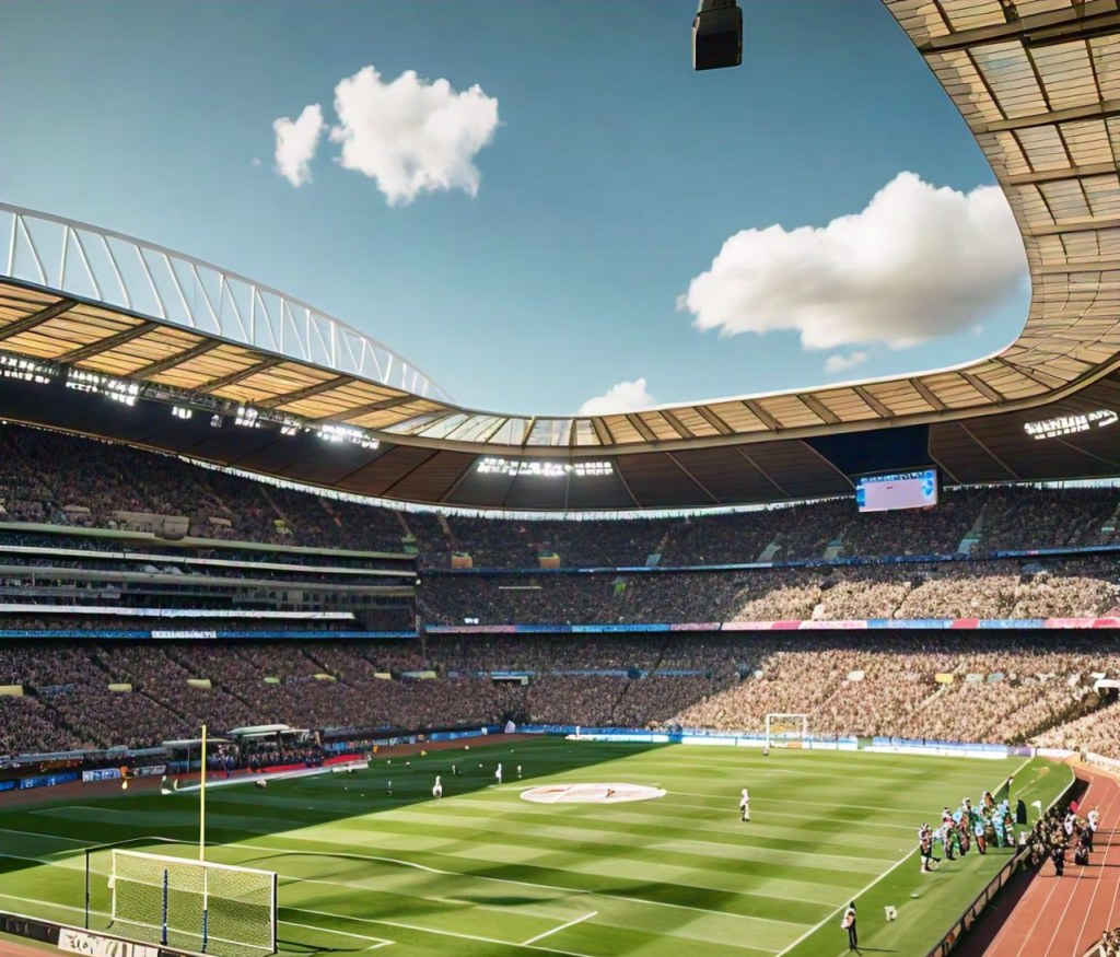 DALL·E 2025-01-23 11.39.30 - A vibrant illustration of a UEFA Champions League scene, showcasing a grand football stadium illuminated under bright floodlights, packed with cheerin